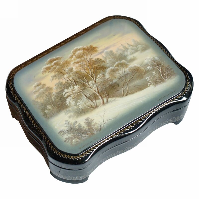 Шкатулку, покрытую блестящим ровным слоем лака, на которой изображен российский летний пейзаж, который передает всю теплоту солнечного денька на речке. Или сюжет вашей любимой русской народной сказки, например "Жар-Птица", где с умелым применением сусального золота картинка выглядит настолько яркой и живой, что кажется будто это происходит прямо сейчас, вызывая в памяти то время, когда вы читали эти сказки на каникулах в младшей школе.