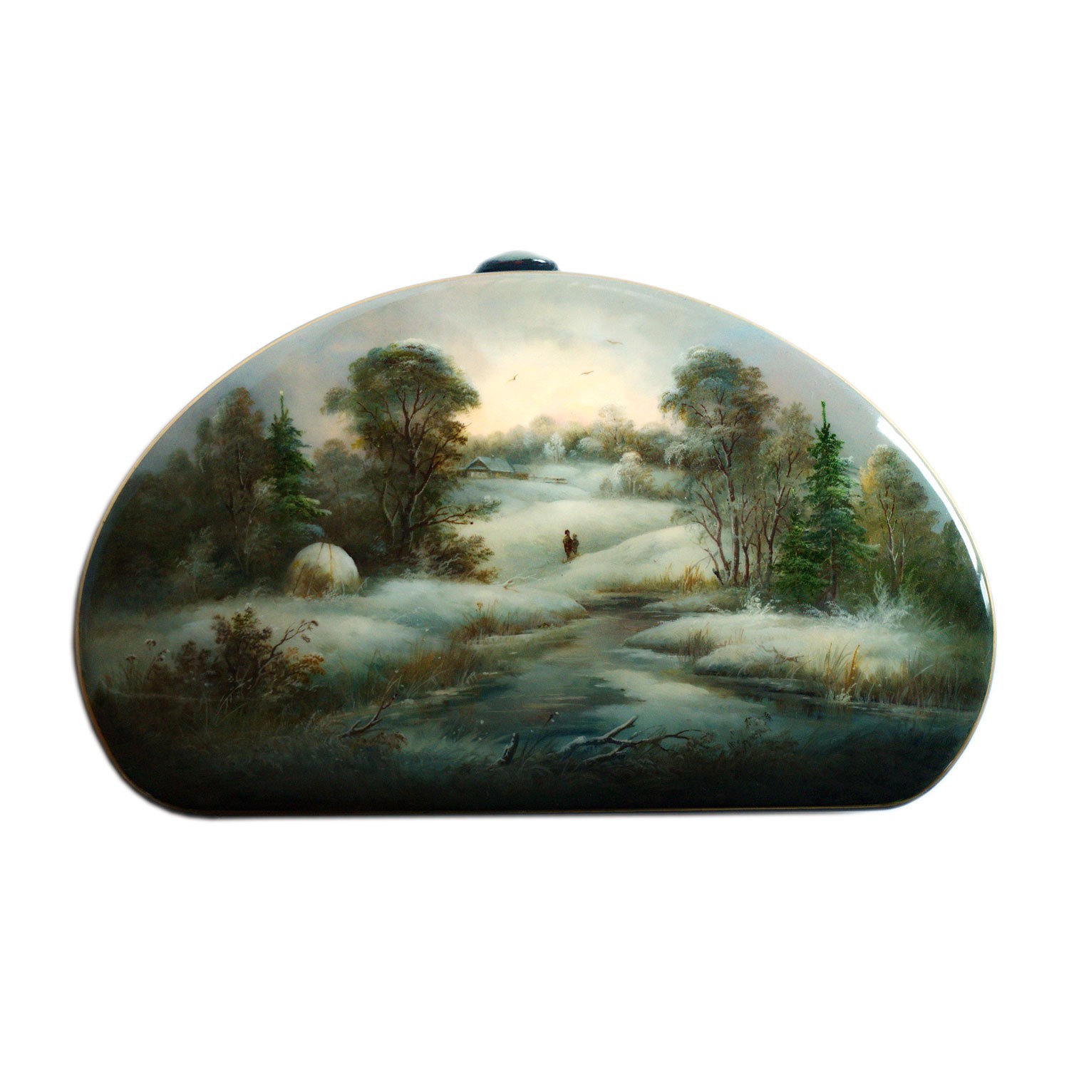 Шкатулка Федоскино - изделие из папье-маше, расписаное масляными красками с использованием сусального зотола и перламутра, покрытое несколькими слоями лака. Федоскинская лаковая миниатюра испольняется масляными красками в три-четыре слоя - последовательно выполняются замалёвок (общий набросок композиции), пропись или перемалёвка (более детальная проработка), лессировка (моделирование изображение прозрачными красками) и бликовка (завершения произведения светлыми красками, передающими блики на предметах).