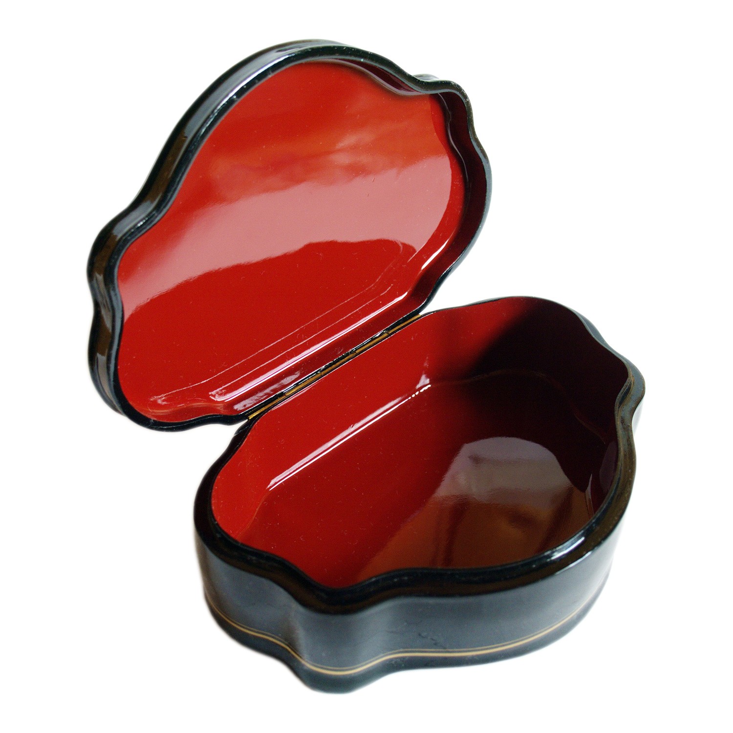Искусную резную форму шкатулки дополняет прелестный пейзаж летнего вечера на реке. За горами, за лесами в туманной дымке садится солнце, разливая зарево на небесном просторе. Янтарные блики отражаются в речке с извилистыми берегами. А вокруг буйство луговых трав и цветов.